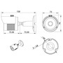Питание от блока питания DC12В/900мА или по технологии PoE (802.3af). Металлический корпус с 3D кронштейном имеет размеры 157x70x66 мм и класс зашиты IP66. Рабочая температура -40...+60 C, вес 0,65 кг.